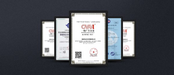 01企業(yè)已通過9項資質(zhì)認證,榮獲國家一級企業(yè)、湖南省一級廣告企業(yè)等18項榮譽,9項國家專利,產(chǎn)品安全可靠